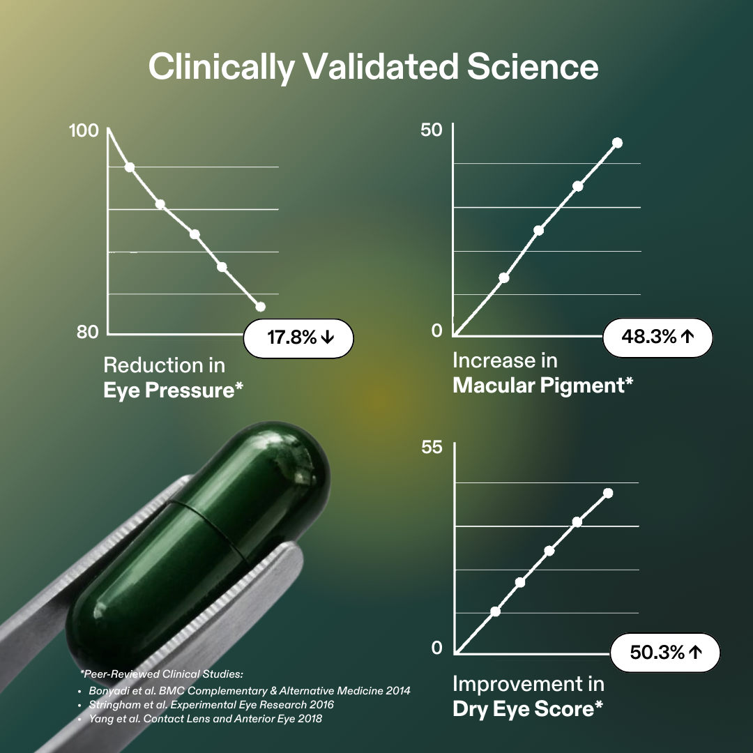 Ophthalmologist‑formulated supplement that supports your optic nerve, macula, healthy eye pressure, and everyday comfort for dry, tired, and strained eyes.